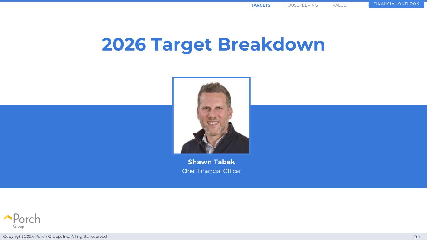 Copyright 2024 Porch Group, Inc. All rights reserved 1442026 Target breakdown Shawn Tabak 首席财务官 Financial OutlookHOUSEKEEPINGARGETS VALUE