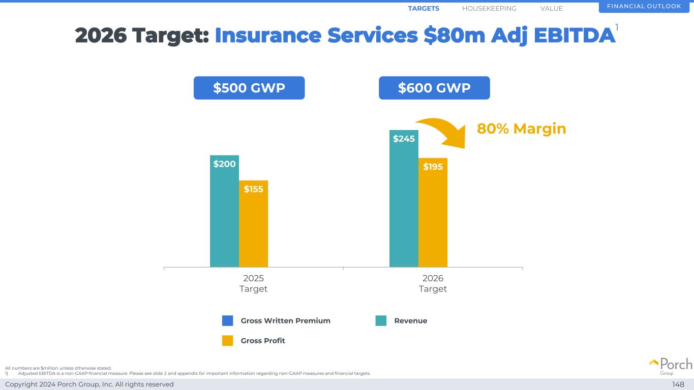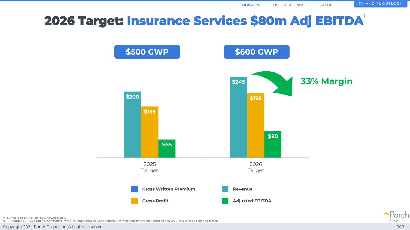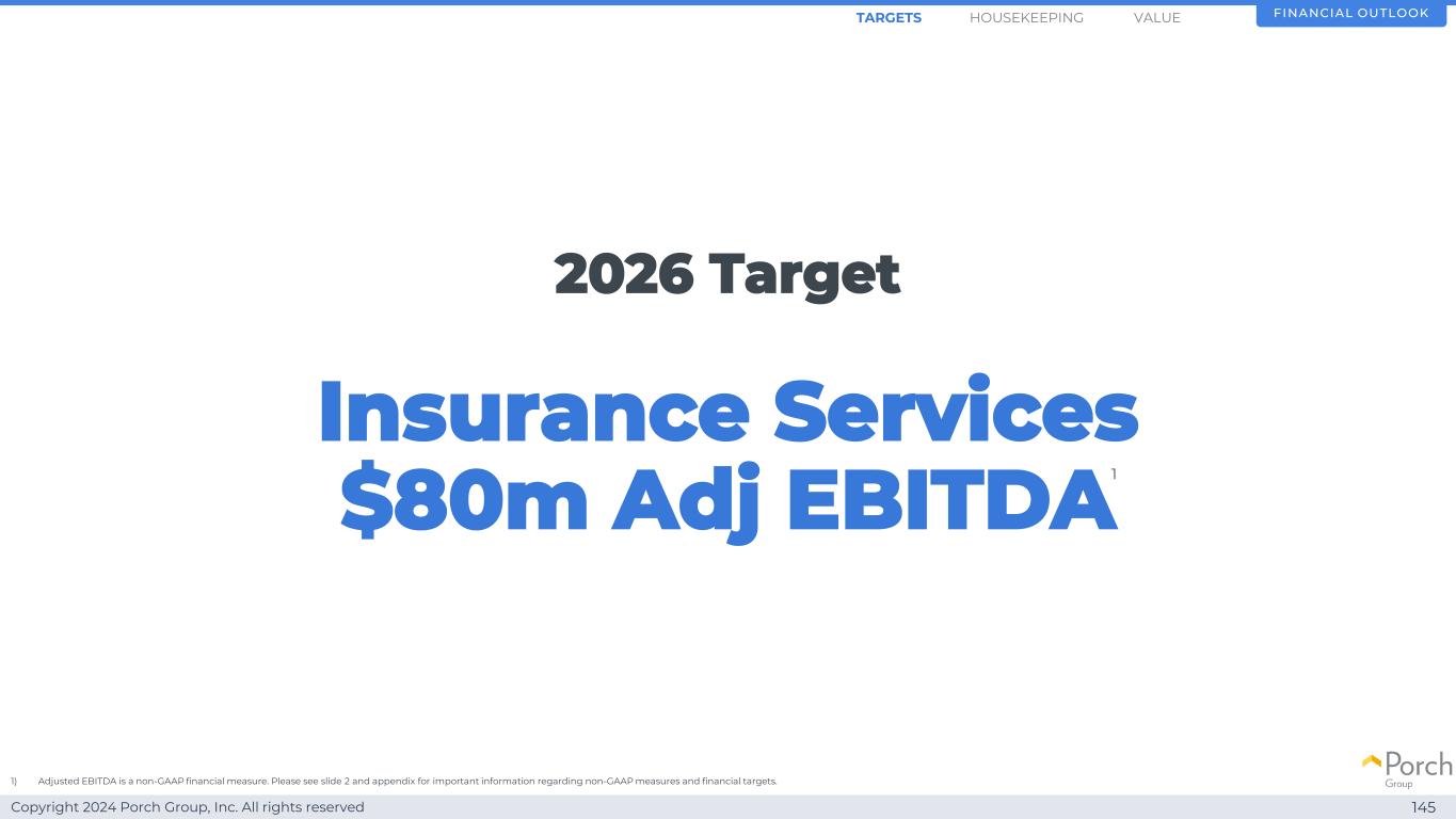 Copyright 2024 Porch Group, Inc. All rights reserved 2026 Target Insurance Services 8000万美元调整后EBITDA 145财务展望1)调整后EBITDA是一项非公认会计准则财务指标。有关非GAAP措施和财务目标的重要信息,请参见幻灯片2和附录。值1