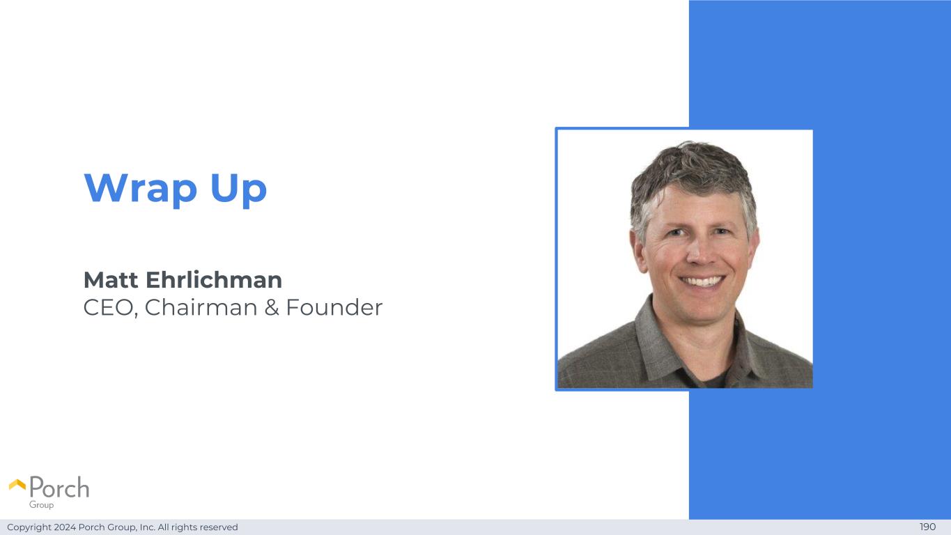 Copyright 2024 Porch Group, Inc. All rights reserved 190 Wrap Up Matt Ehrlichman首席执行官、董事长兼创始人