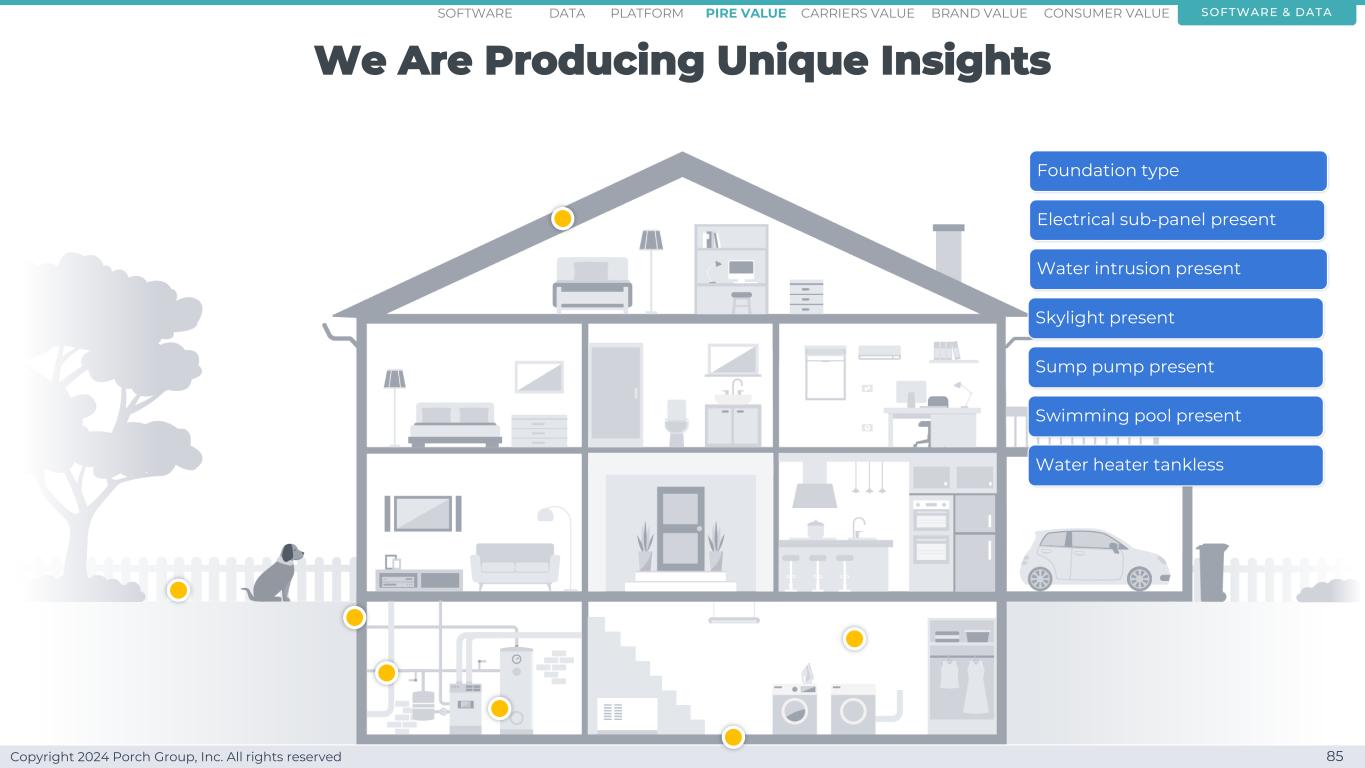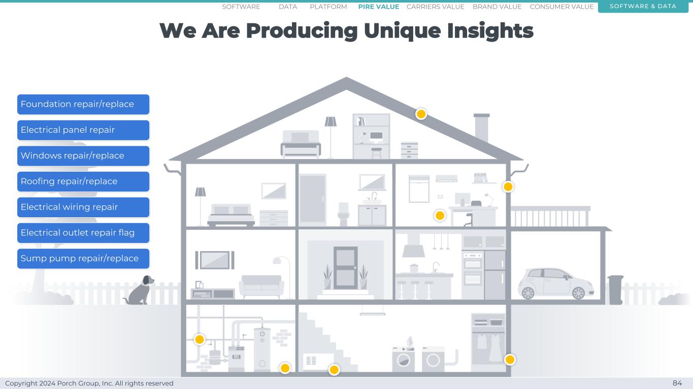 Copyright 2024 Porch Group, Inc. All rights reserved Ability to better segment homes 83 We know how people,geographies,and homes are unique software & dataconsumer valueCARRRIERS valuepire value brand valuePlatformsoftware data