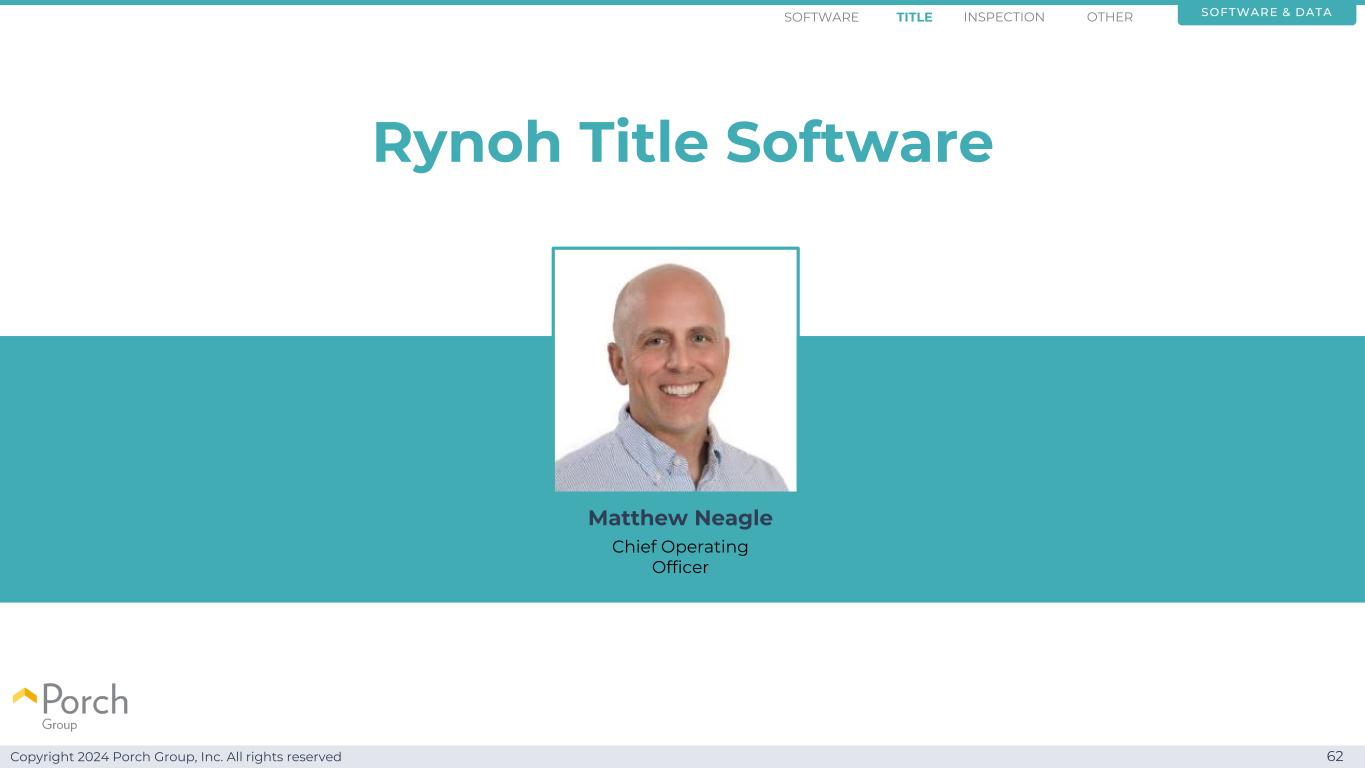Copyright 2024 Porch Group, Inc. All rights reserved 62 Rynoh title software Matthew Neagle首席运营官software & datasoFTware title inspection other