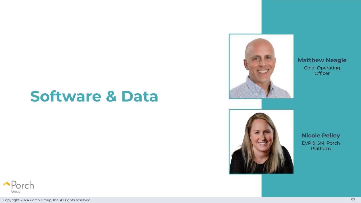 Copyright 2024 Porch Group, Inc. All rights reserved 57 Software & Data Matthew Neagle首席运营官Nicole Pelley执行副总裁兼总经理,Porch Platform