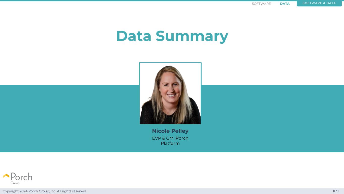 Copyright 2024 Porch Group, Inc. All rights reserved 109 Data Summary Software & DATASOFTWARE DATA Nicole Pelley Porch Platform执行副总裁兼总经理