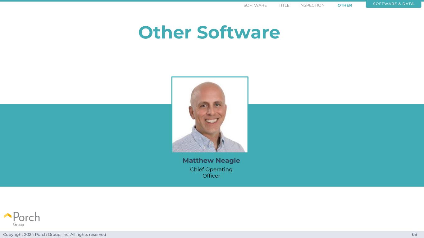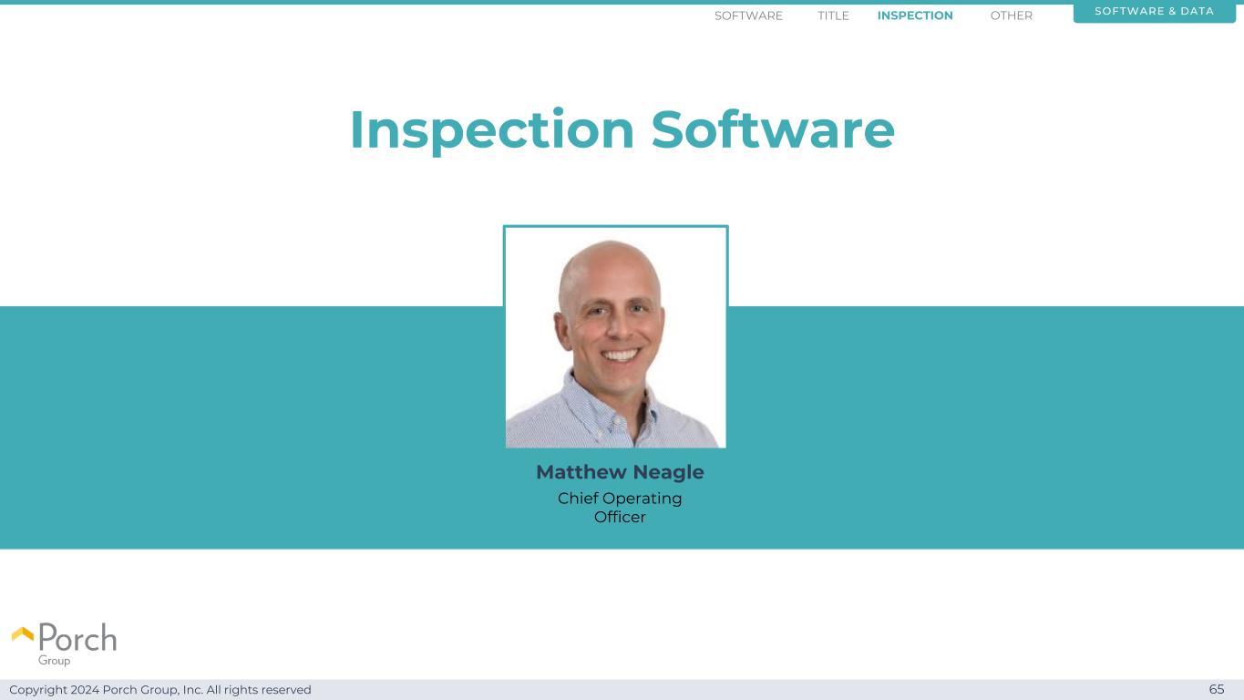 Copyright 2024 Porch Group, Inc. All rights reserved 65 Inspection Software Software & DatATITLE Inspection OtherSoftware Matthew Neagle首席运营官