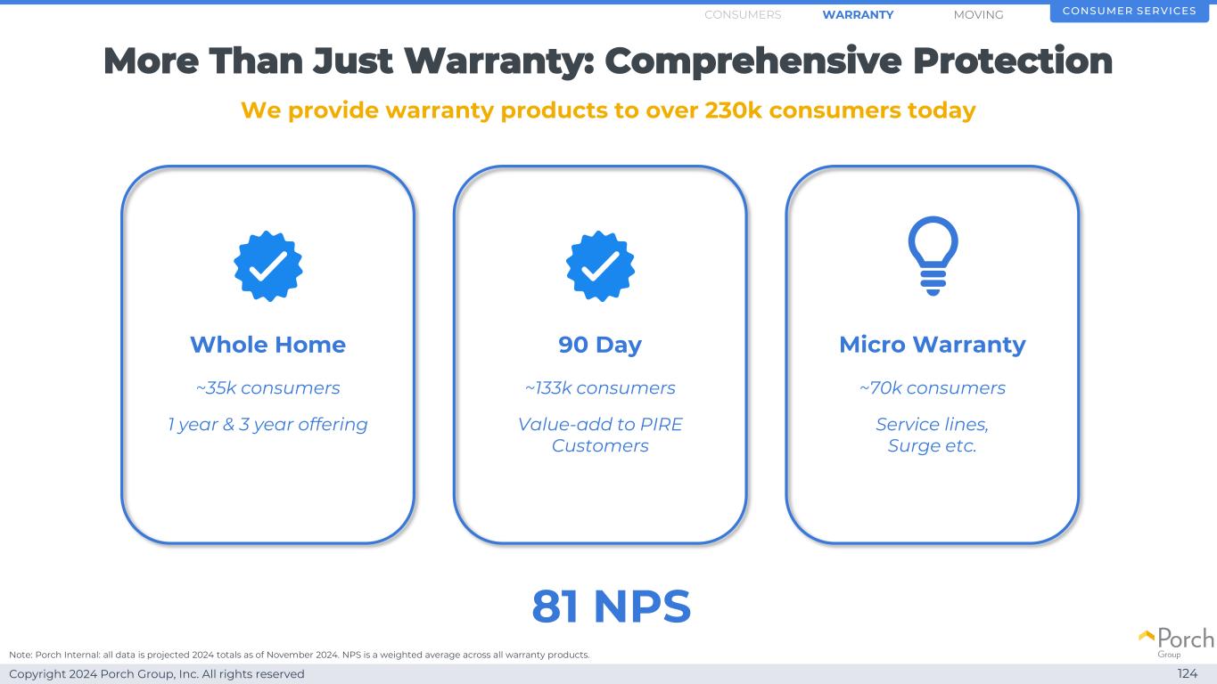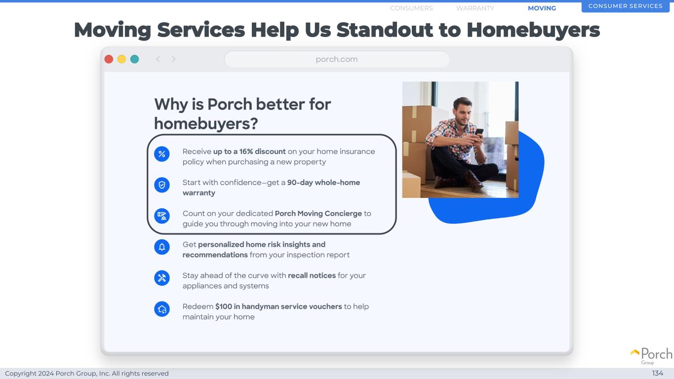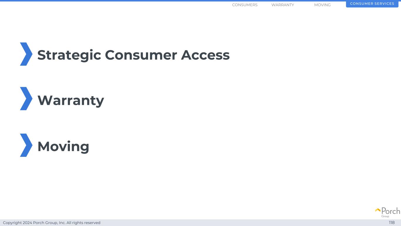 版权所有2024 Porch Group, Inc. All rights reserved Consumer Services 118 Strategic Consumer Access Warranty Moving WARRANTYConsumers