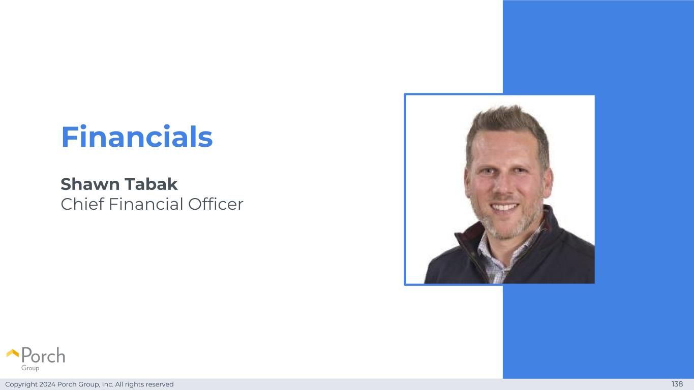 Copyright 2024 Porch Group, Inc. All rights reserved 138 Financials Shawn Tabak 首席财务官