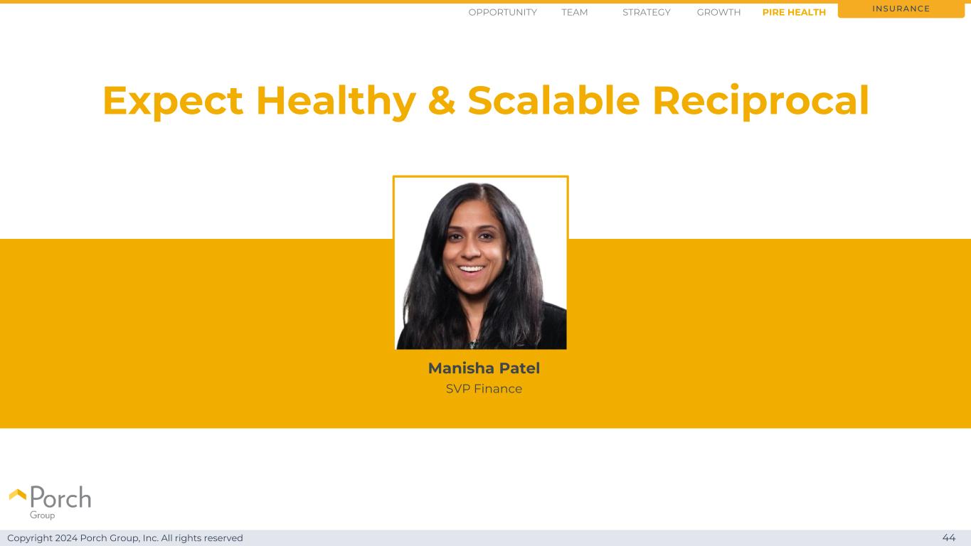 版权所有2024 Porch Group, Inc. All rights reserved 44 Expect Healthy & Scalable Reciprocal Manisha Patel高级副总裁Finance Insurance Opportunity Strategy Growth Team PIRE Health