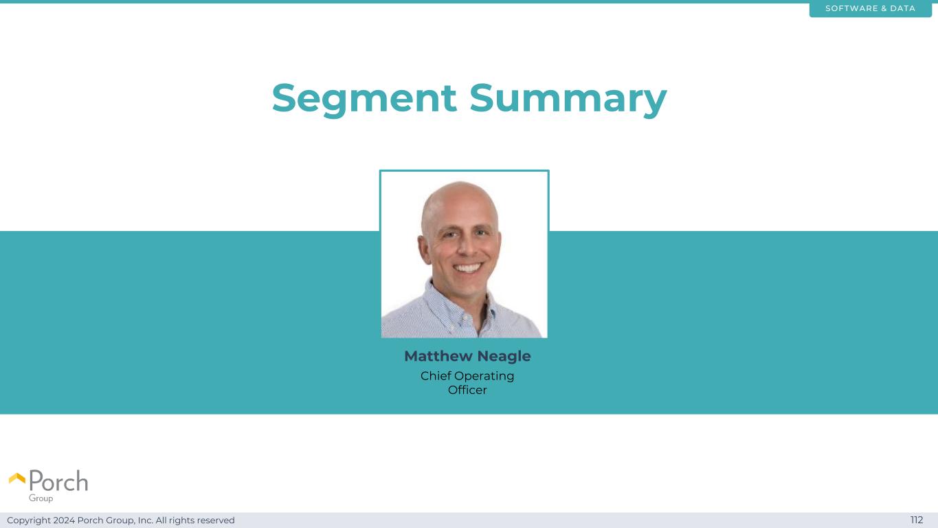 Copyright 2024 Porch Group, Inc. All rights reserved 112 Segment Summary Matthew Neagle Chief Operating Officer SOFTWARE & DATA