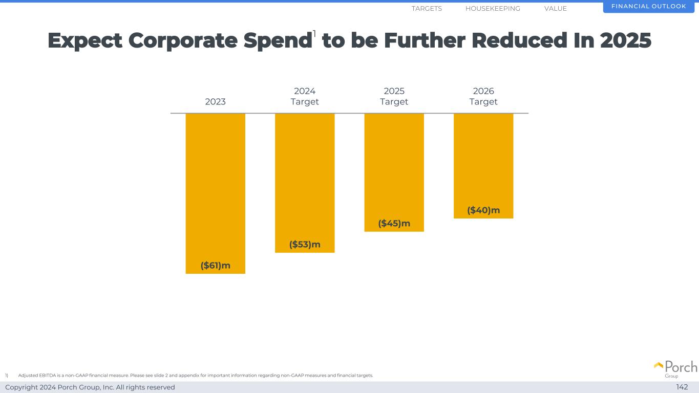 Copyright 2024 Porch Group, Inc. All rights reserved expect corporate spend1 to be further reduced in 2025142($ 61)m($ 53)m($ 45)m($ 40)m 20232024 Target 2025 Target 2026 Target FINANCIAL OUTLOOKHOUSEKEPINGARGETS 1)Adjusted EBITDA is a non-GAAP financial measure。有关非GAAP措施和财务目标的重要信息,请参见幻灯片2和附录。价值