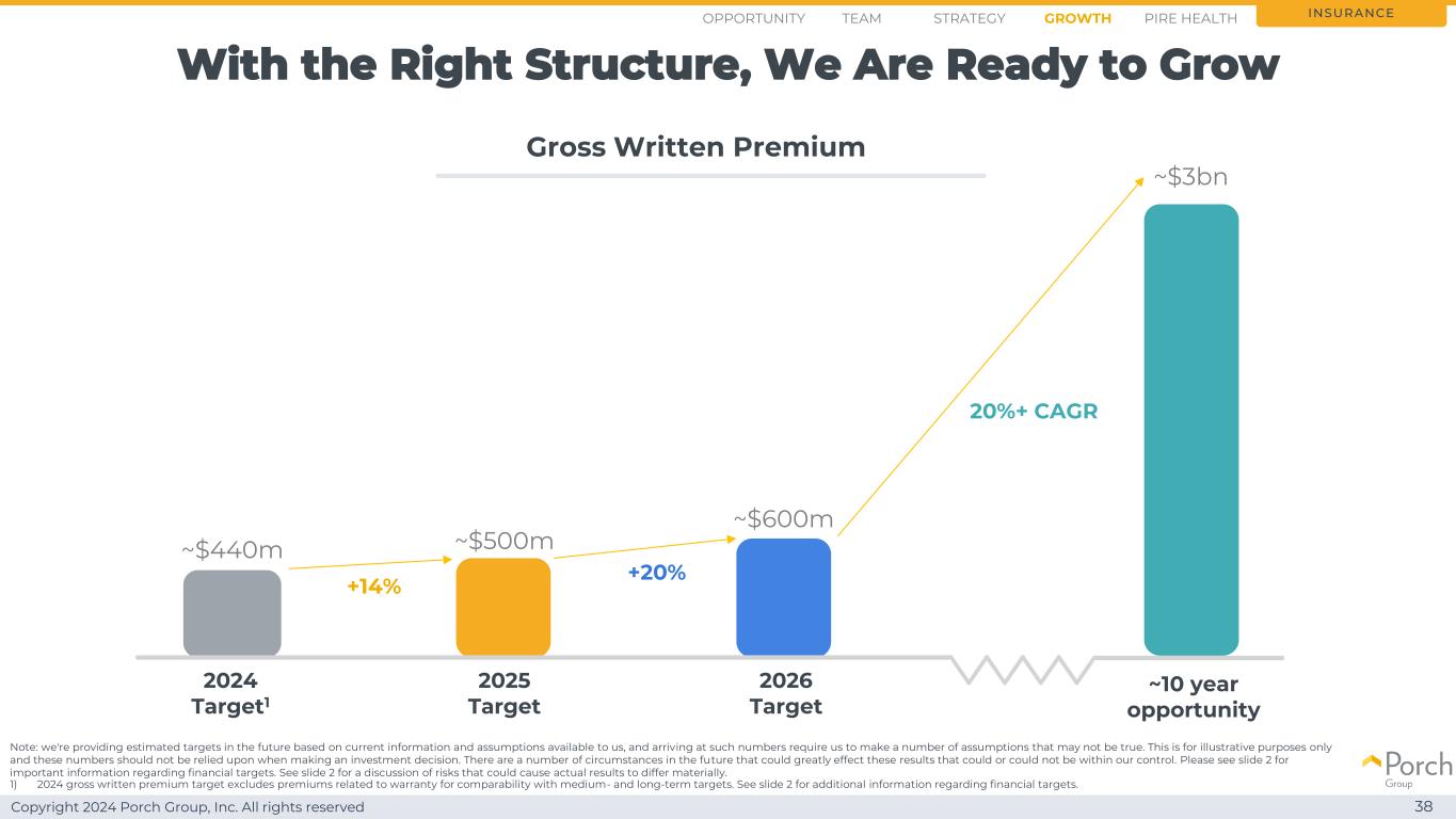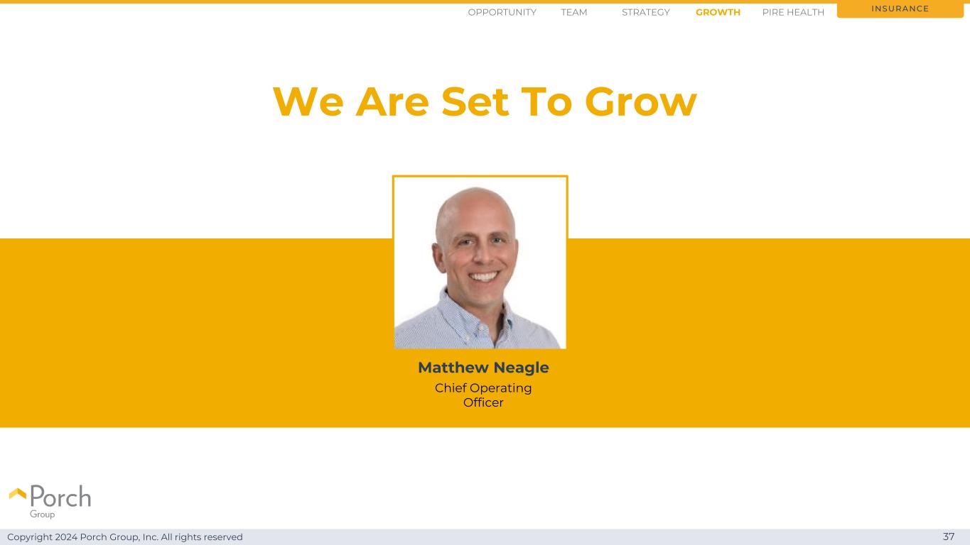 Copyright 2024 Porch Group, Inc. All rights reserved 37 We are set to grow insurance opportunity strategy growthteam PIRE health Matthew Neagle首席运营官