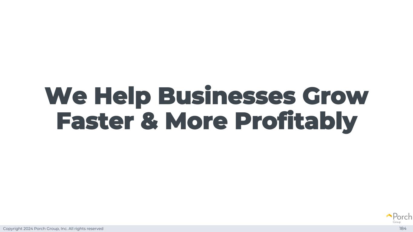Copyright 2024 Porch Group, Inc. All rights reserved We help businesses grow faster & more profitable 184