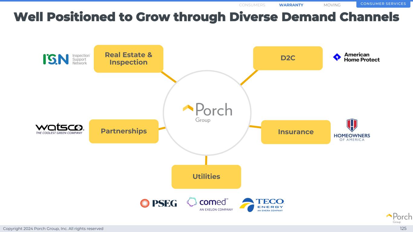 Copyright 2024 Porch Group, Inc. All rights reserved Well positioned to grow through diverse demand channels 125 Consumer Service SMOVINGWARRANTYConsumers Real Estate & Inspection D2C Insurance Utilities Partnerships
