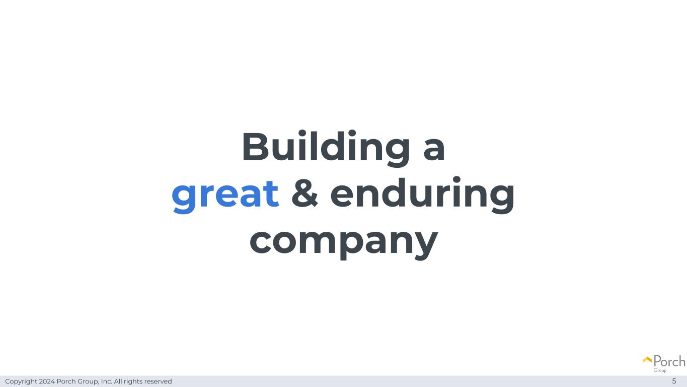 Copyright 2024 Porch Group, Inc. All rights reserved Building a great & enduring company 5