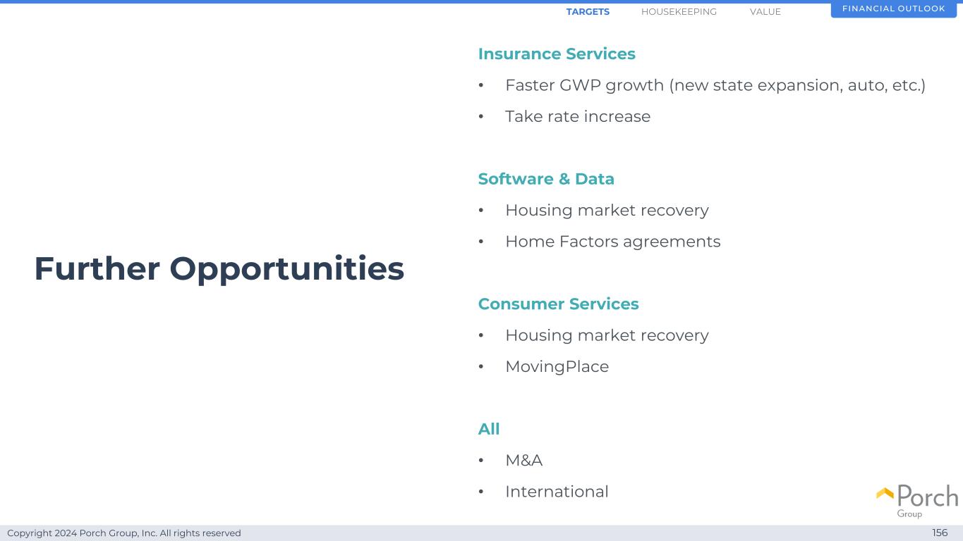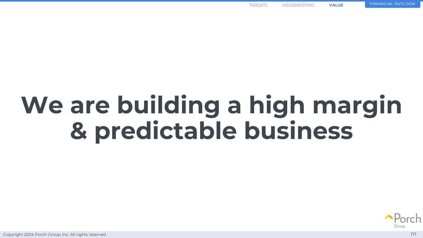 Copyright 2024 Porch Group, Inc. All rights reserved 171 We are building a high margin & predictable business financial outlookHOUSEKEEPINGARGETS value