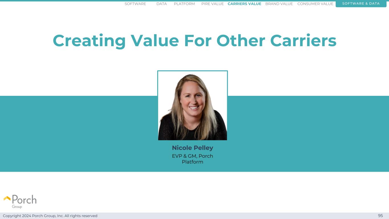 Copyright 2024 Porch Group, Inc. All rights reserved 95 Creating Value for Other Carriers Nicole Pelley执行副总裁兼总经理,Porch Platform Software & DatAConsumer ValueCarriers ValuePIRE Value品牌ValuePlatformSoftware Data