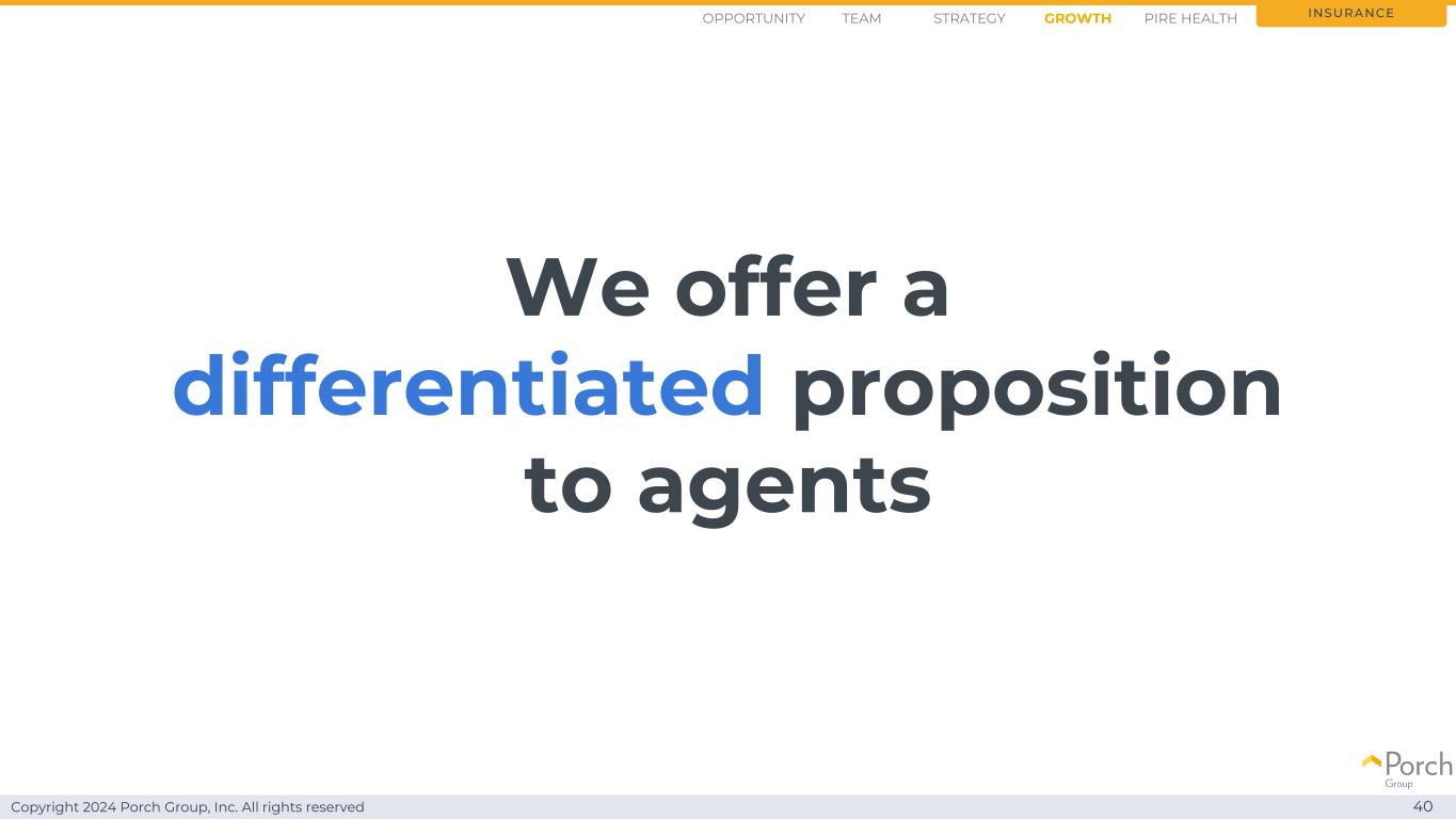 版权所有2024 Porch Group, Inc. All rights reserved We offer a to agents 40 insurance differentiated proposition opportunity strategy growthteam PIRE health