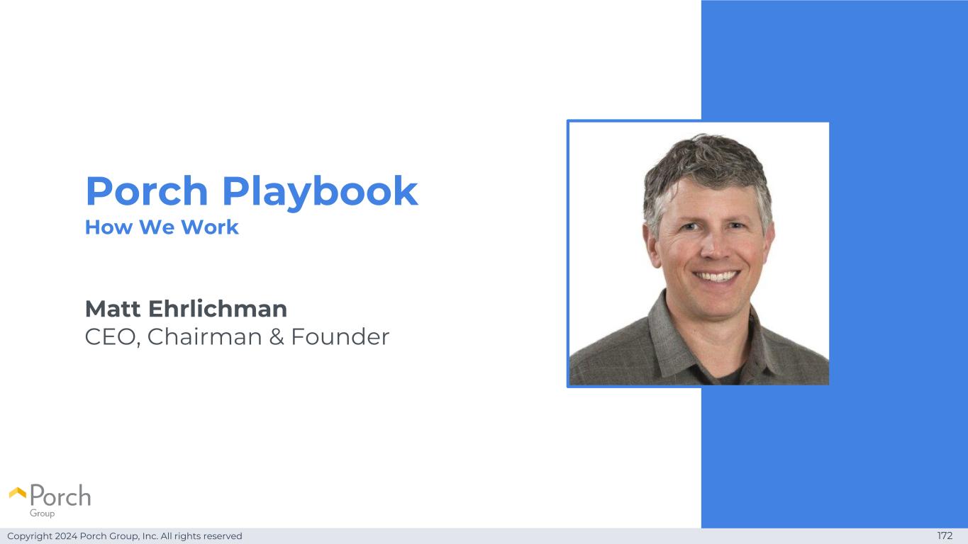 Copyright 2024 Porch Group, Inc. All rights reserved 172 Porch Playbook我们是如何工作的Matt EhrlichmanCEO、董事长兼创始人