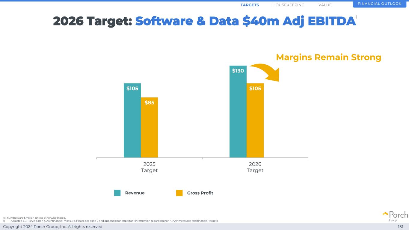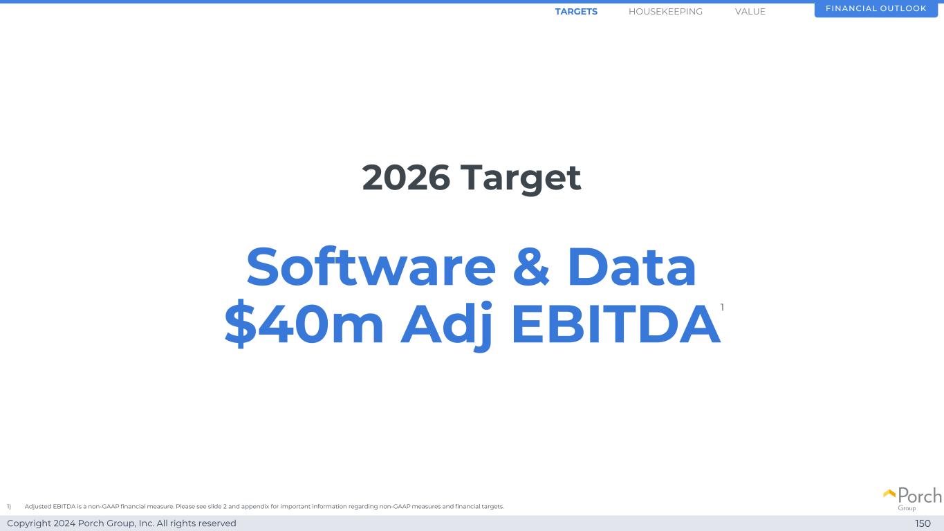 Copyright 2024 Porch Group, Inc. All rights reserved 2026 Target Software & Data 4000万美元Adj EBITDA 150财务展望1)调整后EBITDA是一种非公认会计准则财务指标。有关非GAAP措施和财务目标的重要信息,请参见幻灯片2和附录。值1