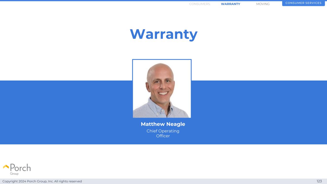 Copyright 2024 Porch Group, Inc. All rights reserved 123 Warranty Consumer Service SMOVINGWARRANTYConsumers Matthew Neagle首席运营官