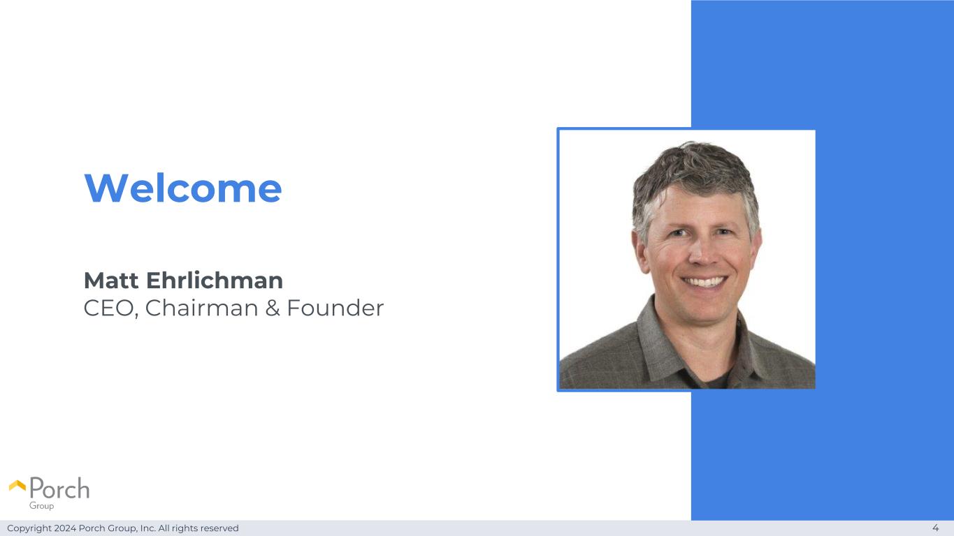 Copyright 2024 Porch Group, Inc. All rights reserved 4 Welcome Matt Ehrlichman首席执行官、董事长兼创始人