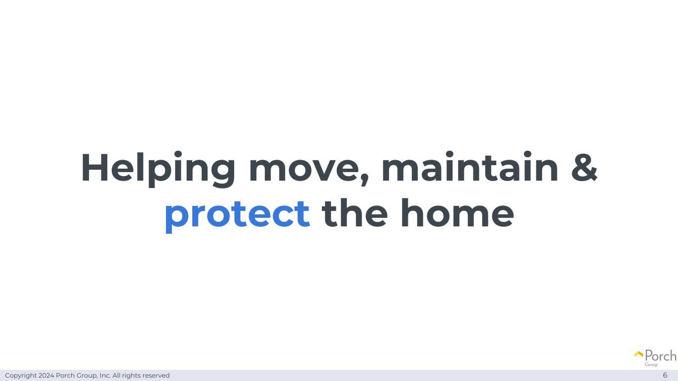 Copyright 2024 Porch Group, Inc. All rights reserved Helping move,maintain & protect the home 6