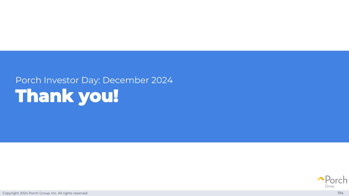 Copyright 2024 Porch Group, Inc. All rights reserved Porch Investor Day:December 2024 Q & A 195