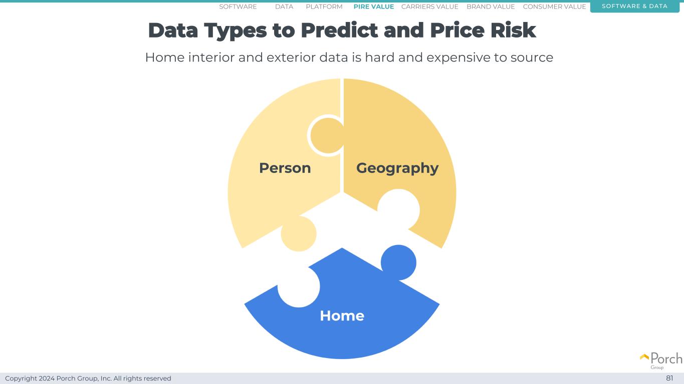 Copyright 2024 Porch Group, Inc. All rights reserved data types to predict and price risk 81 home interior and exterior data are hard and expensive to source person geography home software & dataconsumer valueCarriers valuepire value brand valuePlatformsoftware data