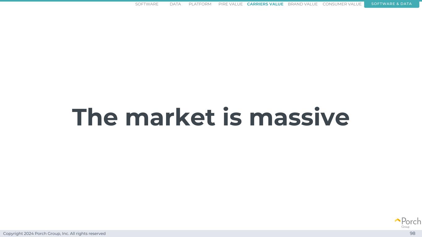 版权所有2024 Porch Group, Inc. All rights reserved Market is massive 98 software & dataconsumer valueCARRRIERS value brand valuepire valuePlatformsoftware data