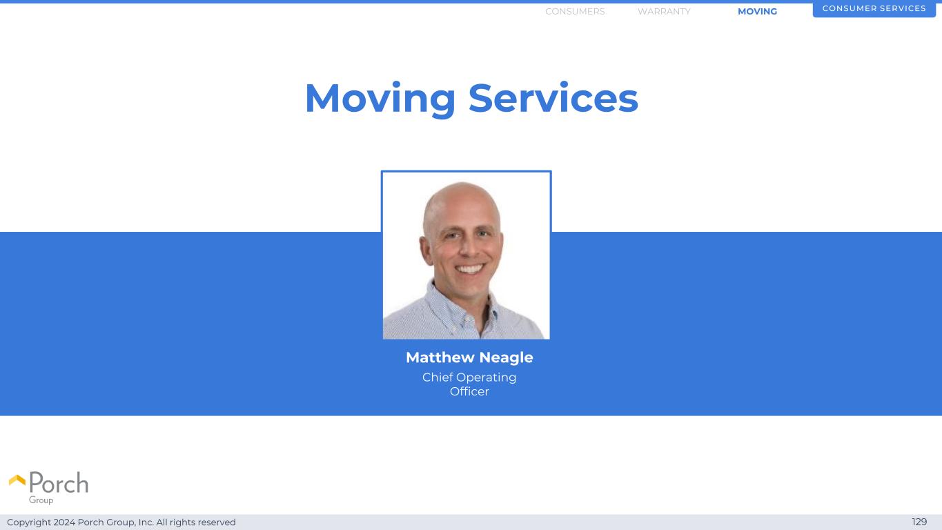 Copyright 2024 Porch Group, Inc. All rights reserved 129 Moving Services Consumer Service SMOVINGWARRANTYConsumers Matthew Neagle首席运营官