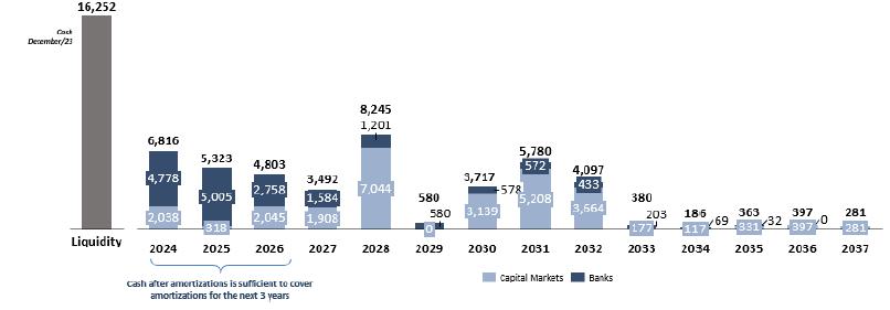 此外,公司对延长摊销期限的目标保持非常积极的态度,专注于长期经营和当地资本市场。在4Q23的主要交易中,我们重点介绍CSN境外子公司发行债券,总额为5亿美元,于2030年到期,目标为部分回购2026年债券,金额约为1.2亿美元。