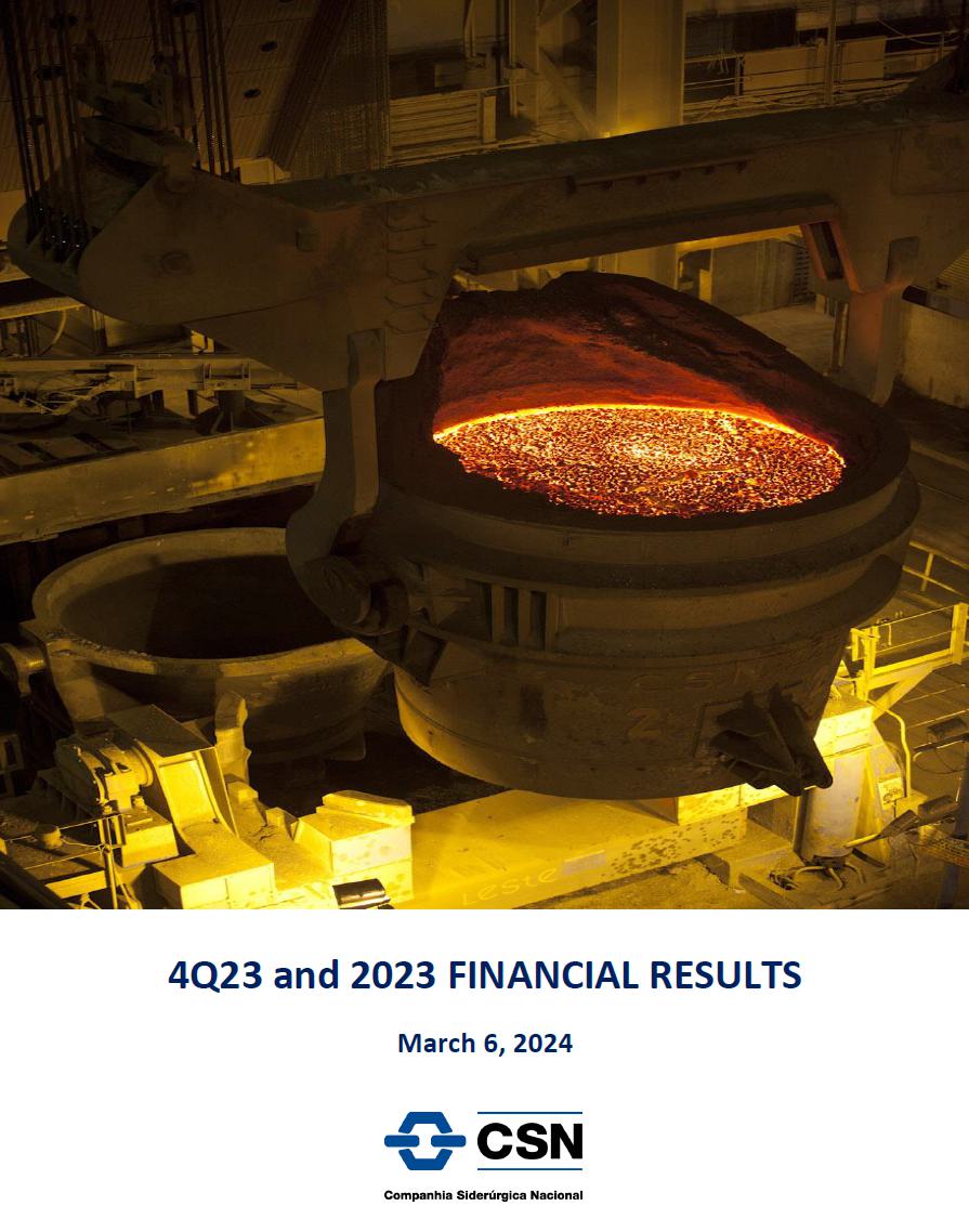 圣保罗,2024年3月6日—— Companhia Sider ú rgica Nacional(“CSN”)(B3:CSNA3)(NYSE:SID)在雷亚尔公布其2023年第四季度和全年(4Q23和2023年)业绩,其财务报表按照巴西会计公告委员会(“CPC”)发布的巴西采用的会计惯例合并,并经巴西证券交易委员会(“CVM”)和联邦会计委员会(“CFC”)批准,并符合国际会计准则理事会(“IASB”)发布的国际财务报告准则(“IFRS”)。