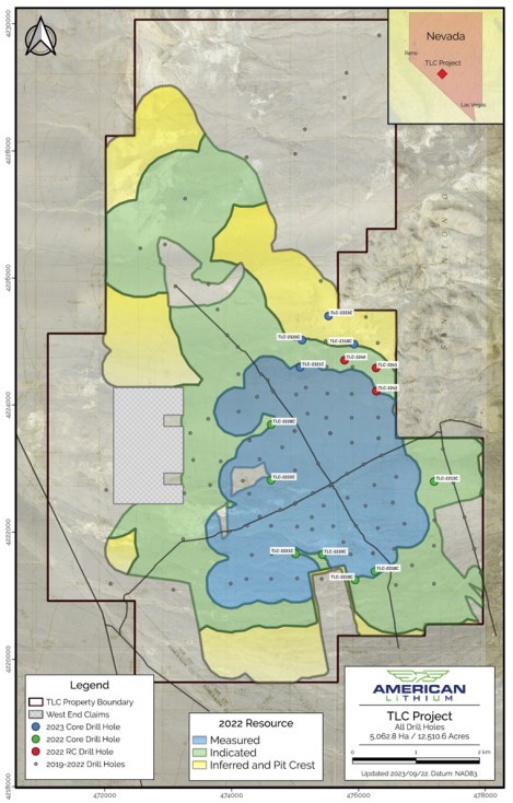 2022年和2023年钻探的总共26个金刚石岩心孔和16个反循环(“RC”)孔将被添加到更新的矿产资源区块模型中,并被纳入更新的矿产资源估算(“MRE”),目前斯坦泰克地球科学家正在进行中。当前已测资源足迹之外的钻孔中的厚、高品位锂交叉点应扩大MRE,特别是向东北偏北地区(见:TLC索赔地图,其中包含钻领位置、资源概要和选择新钻孔,下文)。