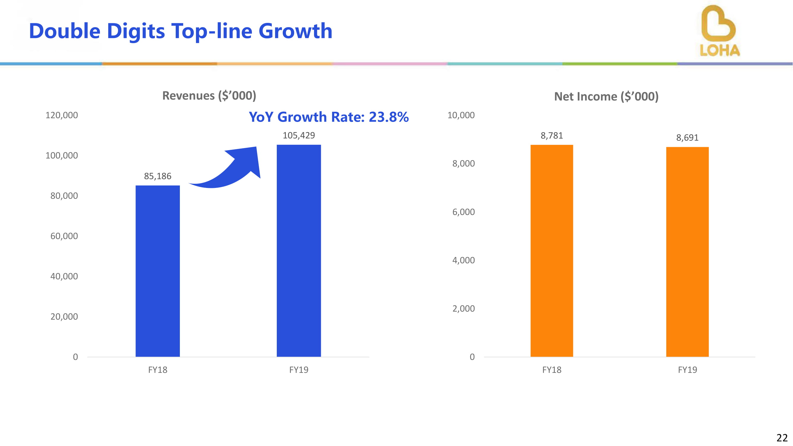 85,186105,429020,00040,00060,00080,00010,000120,000FY18FY19营收($“000”)同比增长率:23.8%228,7818,69102,004,0006,0008,00010,0000FY18FY19净收入($“000”)