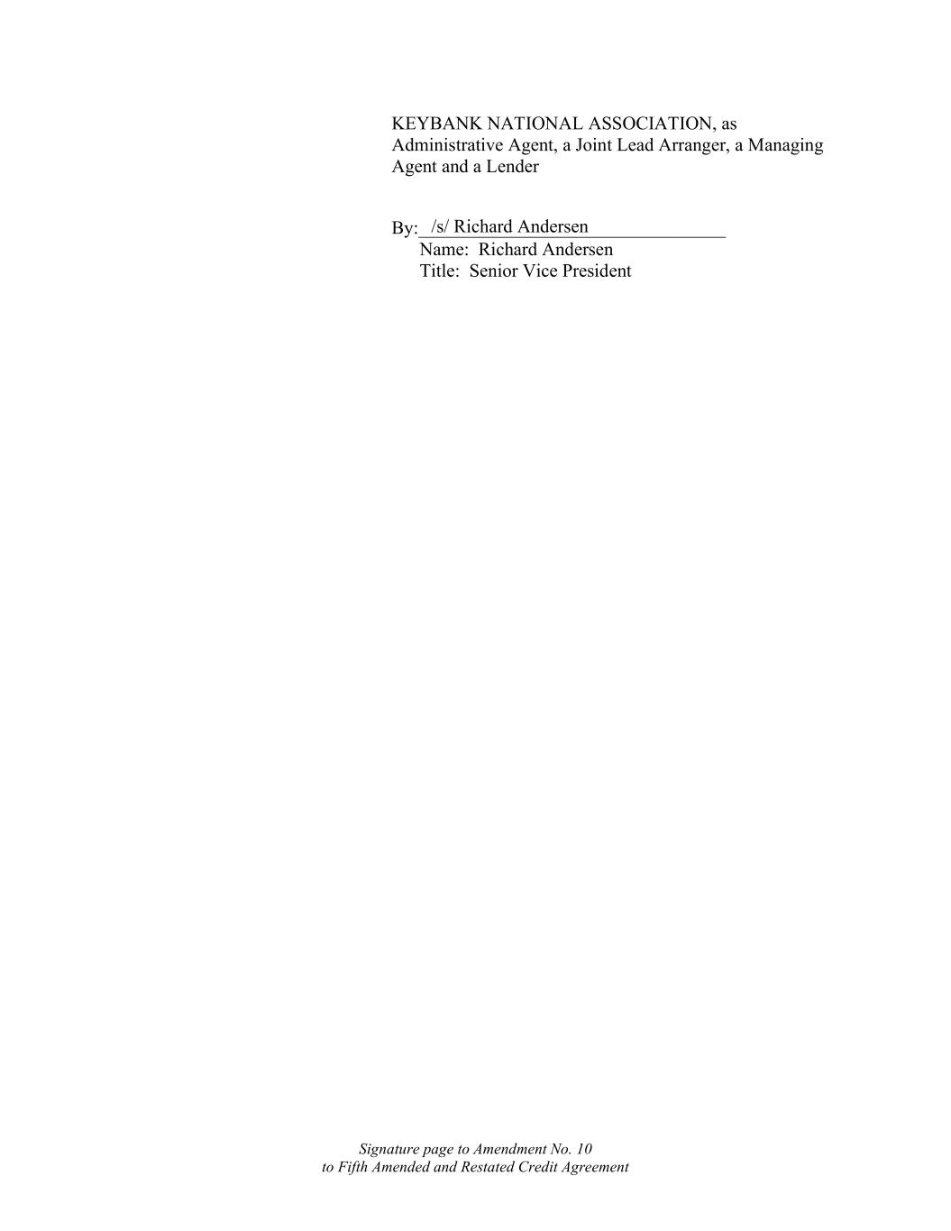 第10号至第5号修正案签署页经修订和重述的信贷协议/s/Richard Andersen KEYBANK NATIONAL Association,作为行政代理人、联席牵头安排人、管理代理人和贷款人:______________________________________姓名:Richard Andersen职务:高级副总裁