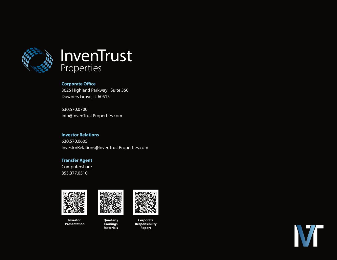 Corporate Office 3025 Highland Parkway | Suite 350 Downers Grove,IL 60515630.57 0.0700 info@inventTrustProperties.com投资者关系630.57 0.0605 InvestorRelations@inventTrustProperties.com转让代理Computershare 855.377.05 10投资者介绍季度收益材料企业责任报告