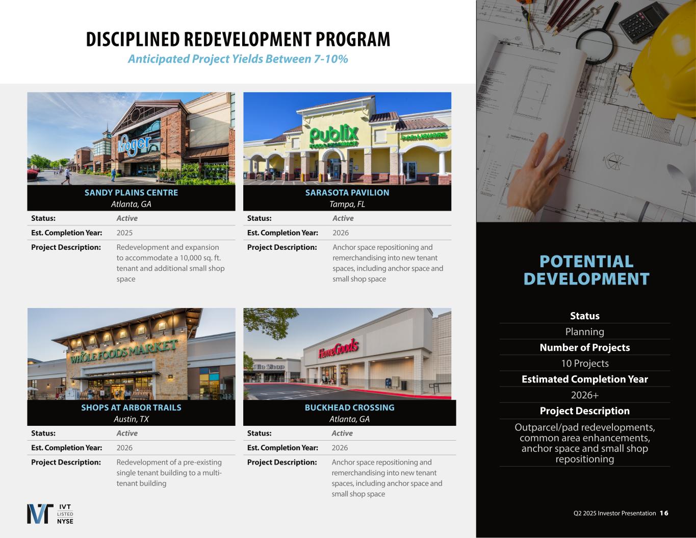 2025年第二季度投资者说明会15累计相同物业NOI增长(‘22-’24)IVT同行平均高于平均水平相同物业NOI增长,资本支出较低1。资料来源:Green Street & Company Filings 14.5% 12.7% Capital Expenditure(including Redevelopment)(include redevelopment)by RET1(average % of NOI‘21-‘24)IVT 23% Peer Avg BRXREGPECO KIM KRG 22% 42% AKR 22% 20% 28% FRT 38% UE 20% 20% 27%