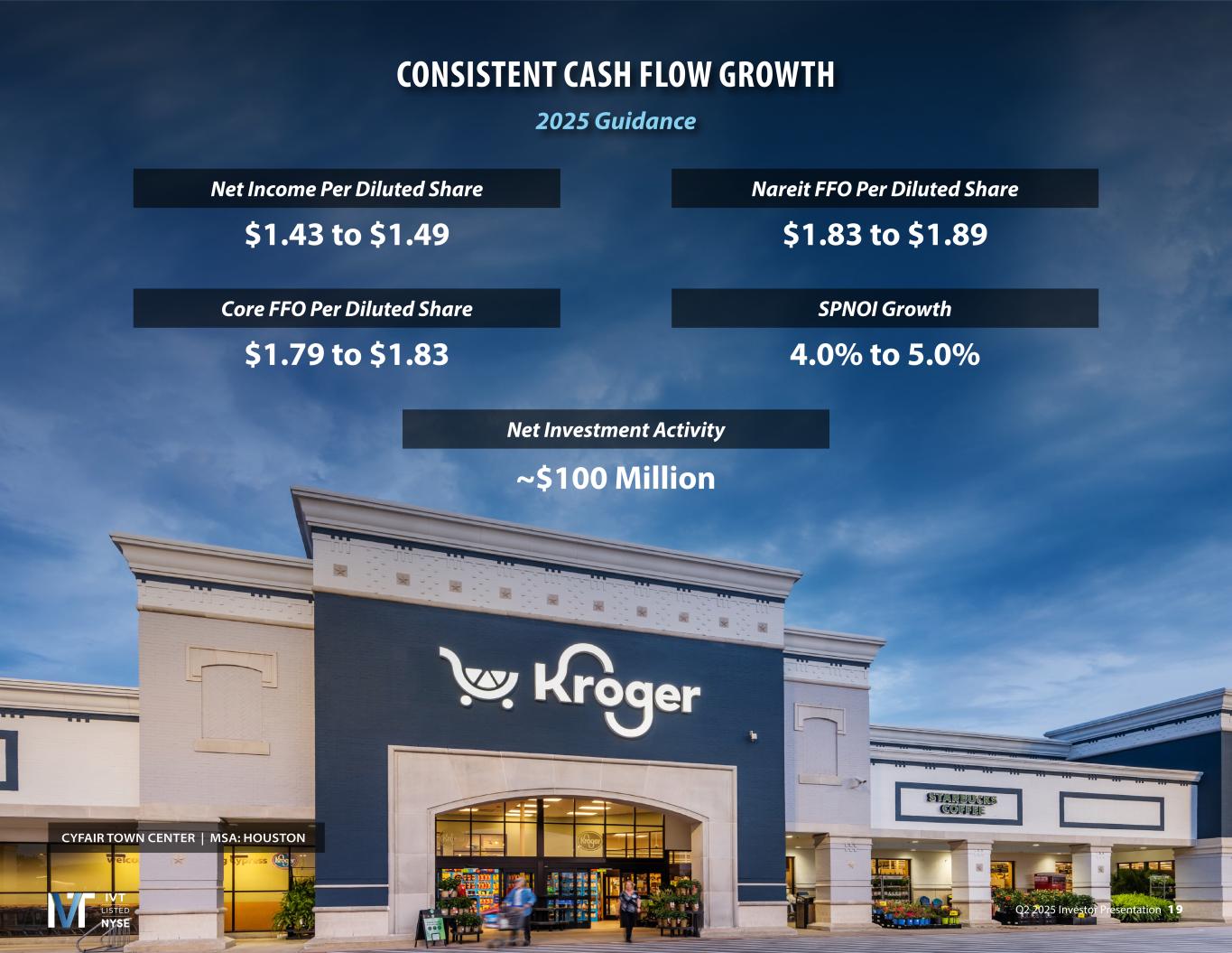 2025年第二季度投资者介绍19持续现金流增长2025年指导CYFAIR镇中心| MSA:休斯顿每股摊薄净收益1.43美元至1.49美元核心FFO每股摊薄股1.79美元至1.83美元Nareit FFO每股摊薄股1.83美元至1.89美元SPNOI增长4.0%至5.0%净投资活动~1亿美元