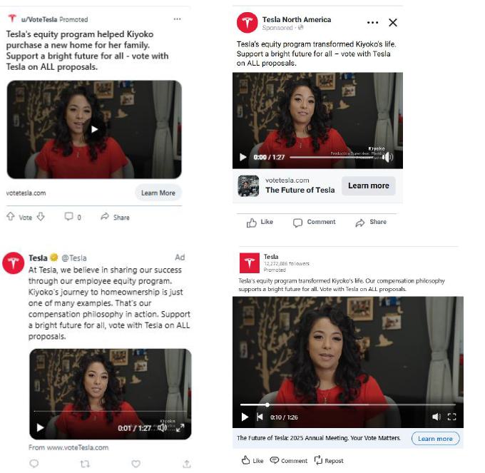 2025年10月6日,特斯拉公司(“特斯拉”)更新了其网站,www.voteTesla.com。更新后的材料副本如下。