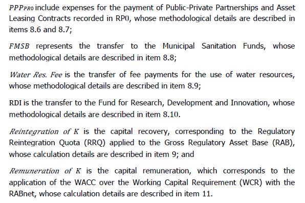SABESP目前的关税监管模式,具有前瞻性特征,根据公司自身的业务计划,根据关税周期预测确定服务的经济-金融均衡关税,这样的方式是关税纳入了未来4年计划的市场数据和投资,尚未开展。在每一次定期关税审查活动中(在当前模型中每4年发生一次),对批准的投资计划的遵守情况进行审查(预测和实际投资之间的任何差异被抵消),并定义一个新的关税周期,并批准下一个关税周期的均衡关税。因此,在当前模型中,监管机构仅在审查过程中证明预测变量的合理性,因为模型是“前瞻性的”,财务金额之间的任何差异都会在每个周期结束时进行调整。