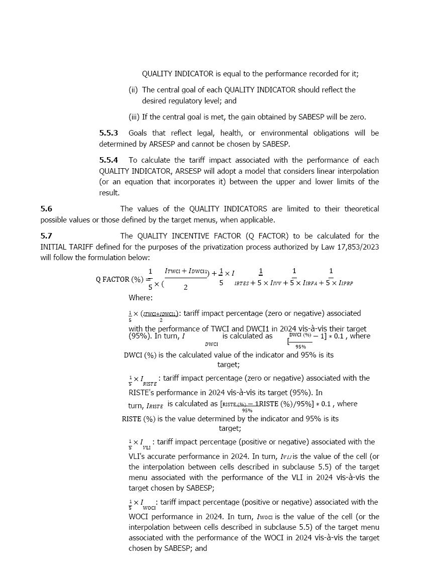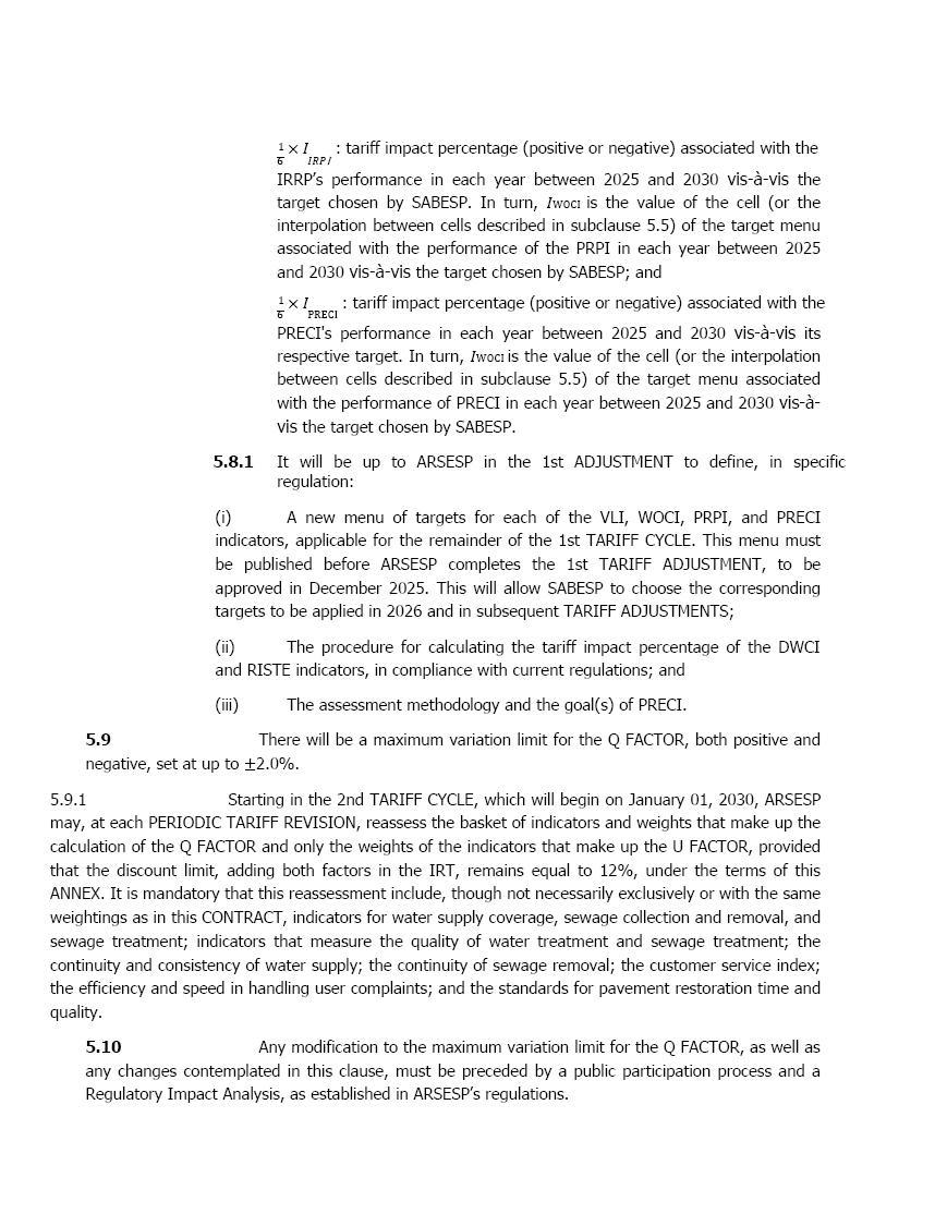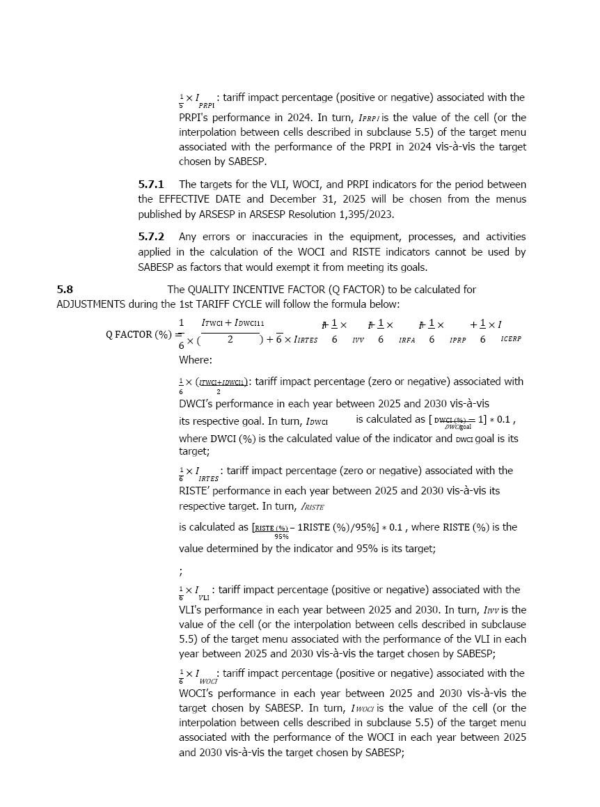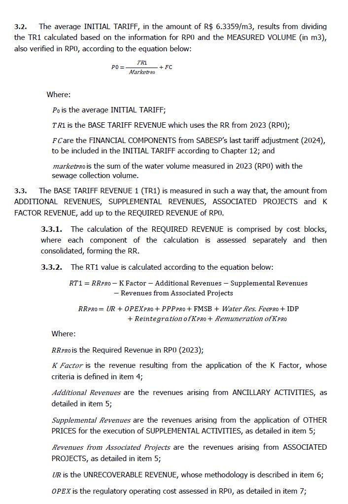 此外,正如国际金融公司强调的那样,上述对附件八所载数值的替代完全是由于重新计算了初始关税和其他相关参数,维持URAE 1 – Southeast审议委员会批准的规则和合同条款不变。此外,国际金融公司强调,为了定义初始关税,使用了Sabesp的官方历史信息,由战略监督(PI)发布,与公司总裁职位相关,符合其经审计的财务报表中包含和发布的信息。