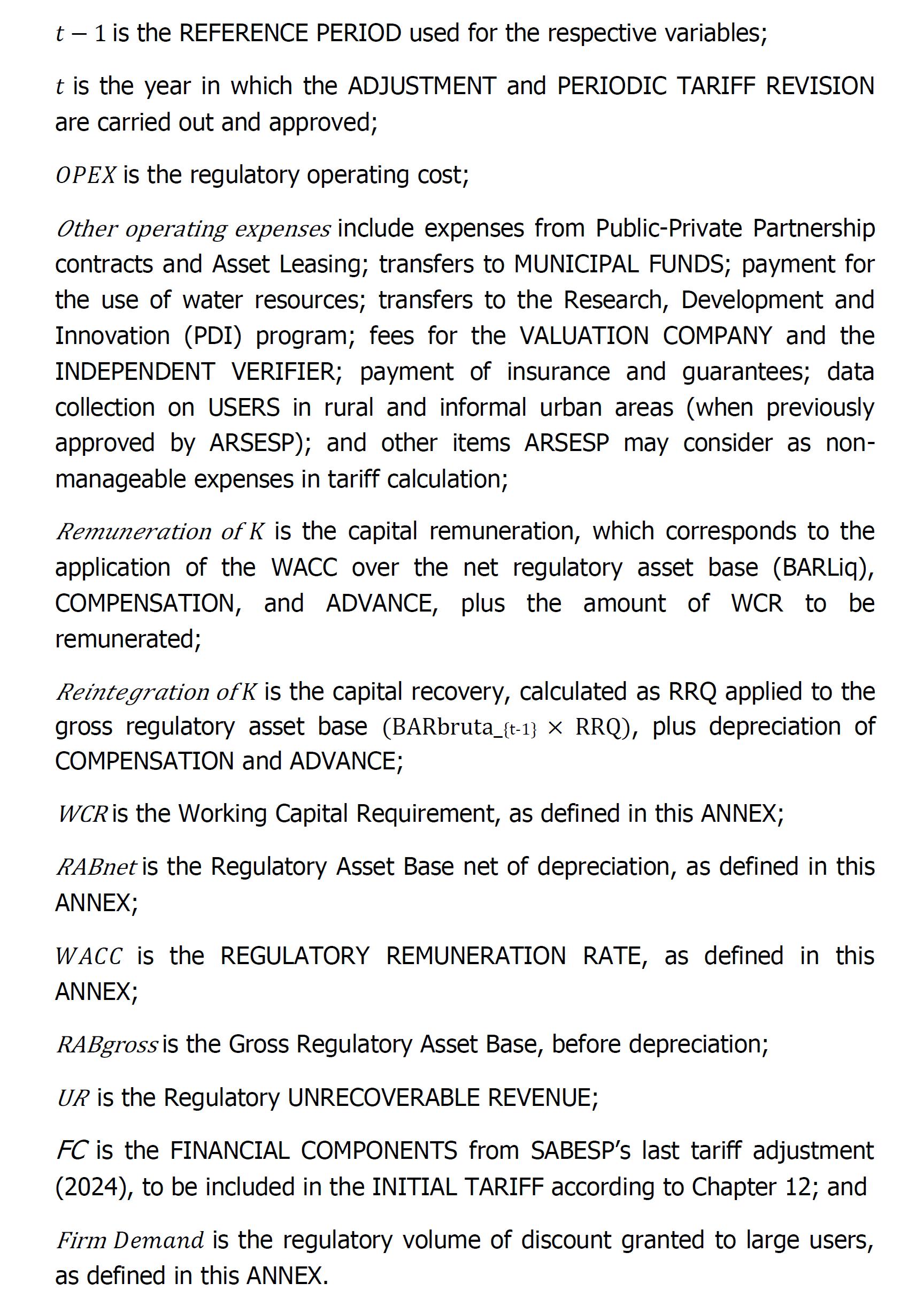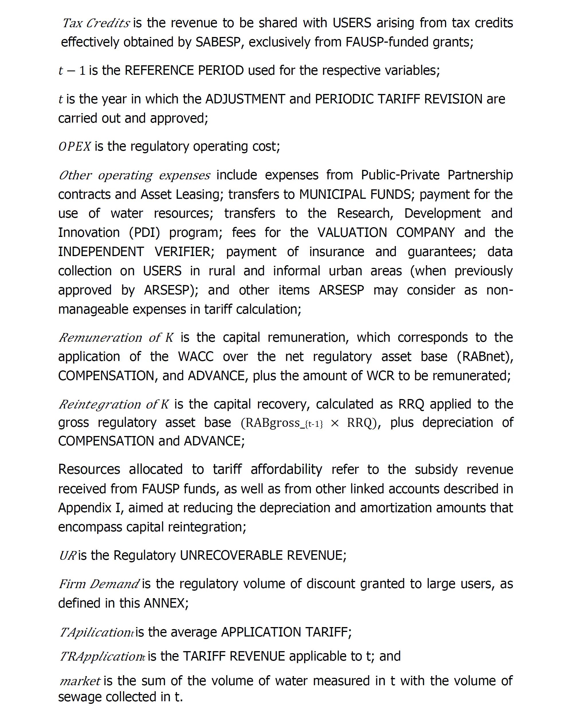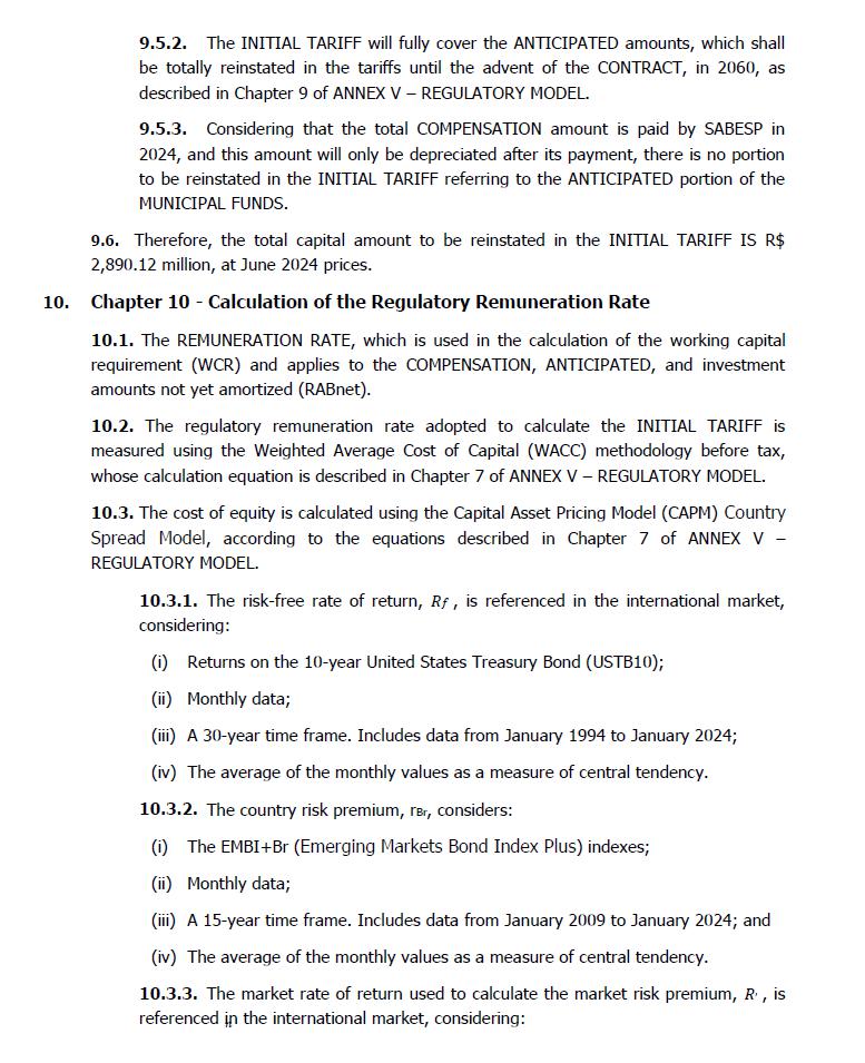 此外,正如国际金融公司强调的那样,上述对附件八所载数值的替代完全是由于重新计算了初始关税和其他相关参数,维持URAE 1 – Southeast审议委员会批准的规则和合同条款不变。此外,国际金融公司强调,为了定义初始关税,使用了Sabesp的官方历史信息,由战略监督(PI)发布,与公司总裁职位相关,符合其经审计的财务报表中包含和发布的信息。