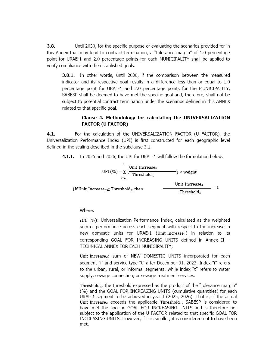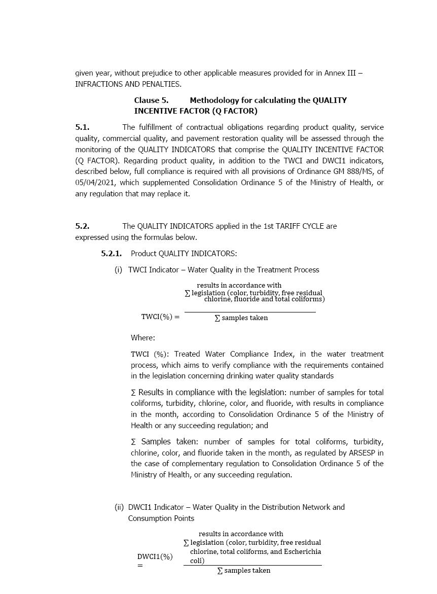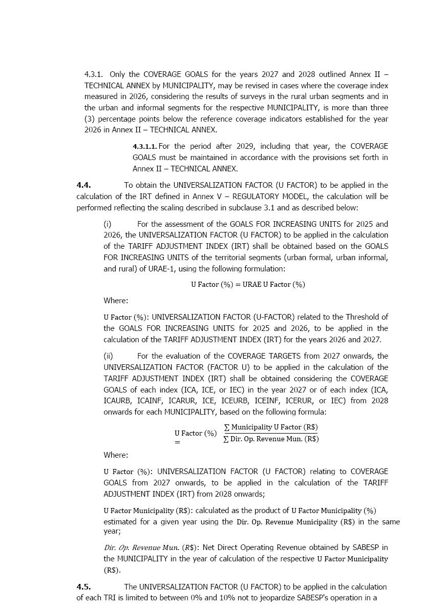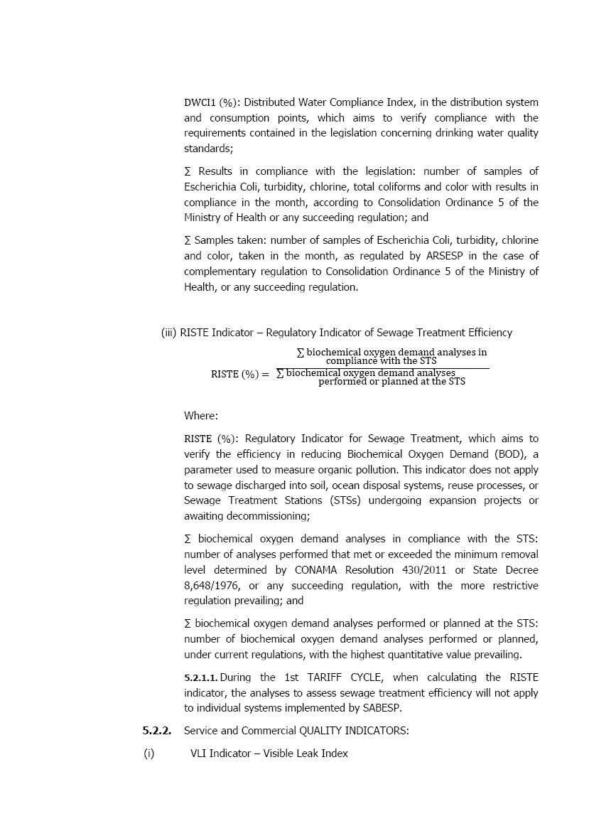 此外,SABESP与URAE 1的新特许权协议中的一个假设是,整合公司数据库的过程将继续发展,引入独立的认证机构和其他要素,从而使ARSSP能够充分执行其监管。新的特许权协议确立了SABESP提供综合信息的规则,这些信息反映了其在参考期内的真实市场,ARSSP通过认证、监管会计、指示协议主要技术参数的面板、连接和单元的地理参考以及服务覆盖范围的扩大进行广泛监测。