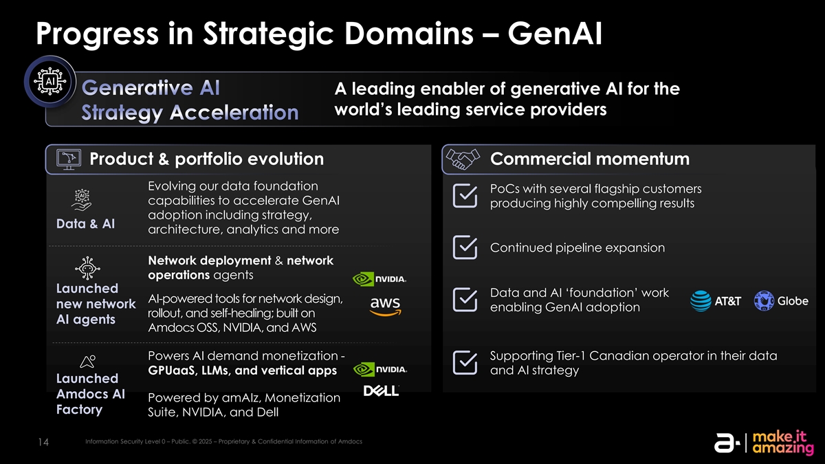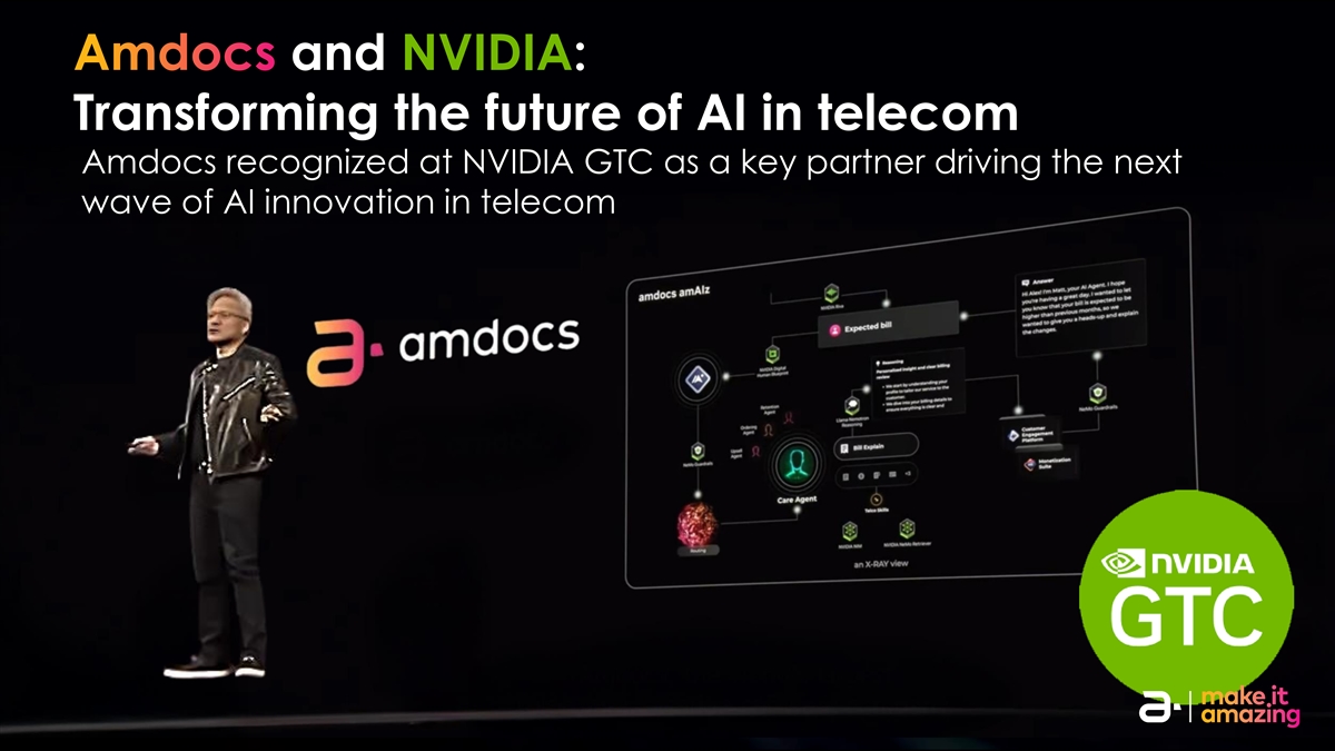 Amdocs和NVIDIA:变革电信领域AI的未来Amdocs在NVIDIA GTC上被认可为推动电信信息安全0级AI创新下一波的关键合作伙伴– Public。©2025 – AMDOCs信息安全0级的专有&机密信息–公开。©2025 – AmDocs的专有和机密信息1313