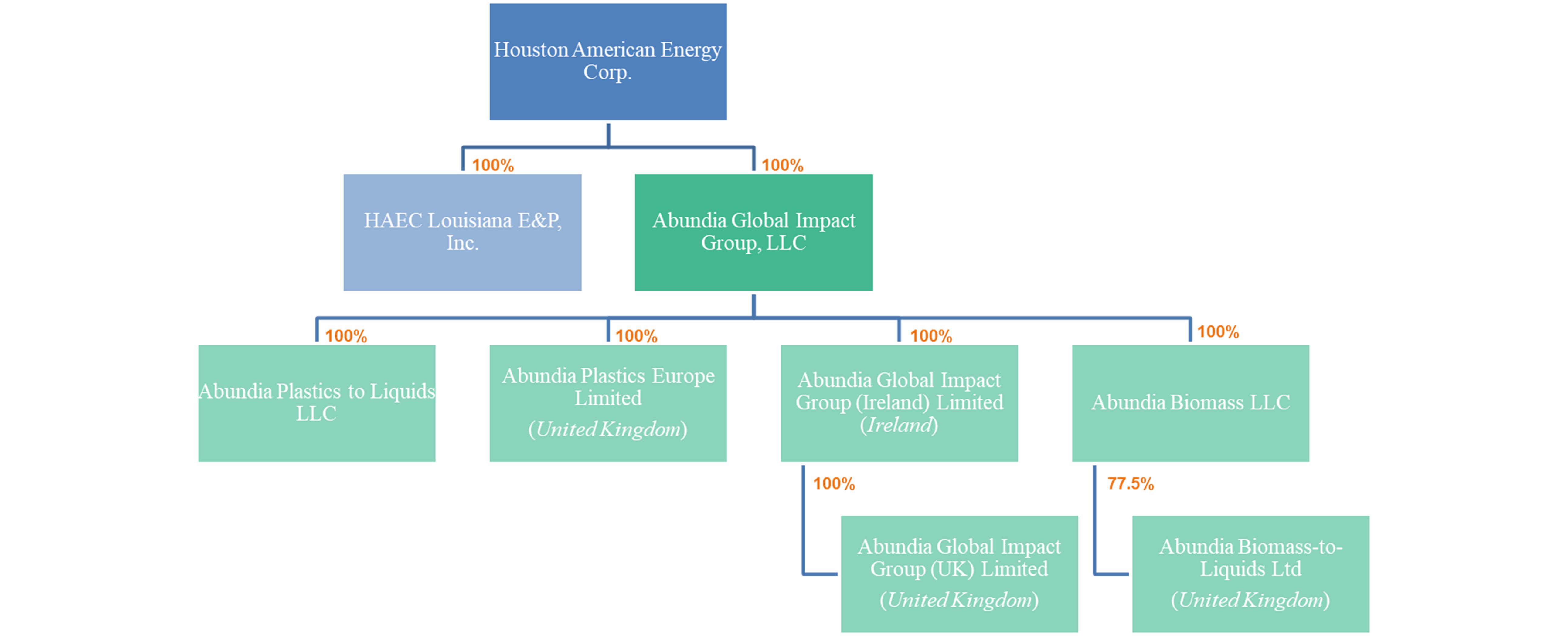 Evans & Evans,Inc.(“Evans & Evans”或“意见的提出者”)了解到,Houston American Energy Corp.(“HUSA”或“发行人”)与Abundia Global Impact Group,LLC(“AGIG”或“目标公司”,连同HUSA,“公司”)订立了日期为2024年12月11日的不具约束力的意向书(“意向书”),其中载列了TERM3提议收购AGIG的所有已发行和未偿还的会员权益(“交易”)的条款。