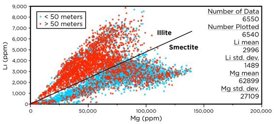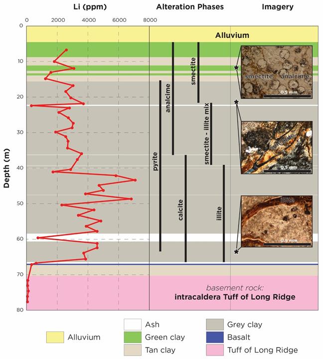 Castor, S.B., (2010) Mineralogy of Western Lithium Corporation core holes WLC-43, WLC-62, WLC-65, and WLC-67, Thacker Pass, Nevada: unpublished report for Western Lithium Corporation, p 18.