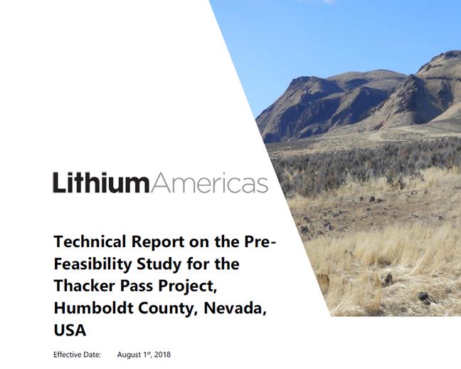 Lithium Americas Corp. Technical Report on the Pre-Feasibility Study for the Thacker Pass Project, Humboldt County, Nevada, USA |