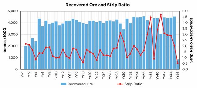 Pit Design Strategy – It is recommended to investigate an option to reduce mine life to improve mining efficiency and compare it to the current design to determine the optimum mining strategy and mine life. |