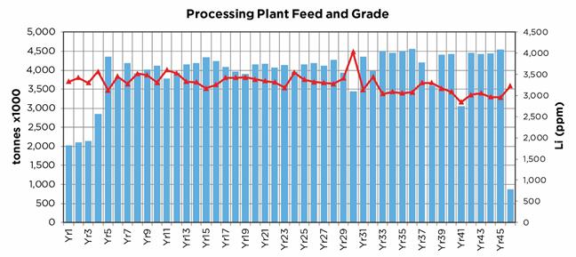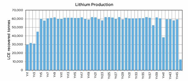 Table 22‑7 indicates a NPV at a range of discount rates and IRR for three lithium carbonate product price cases; US$10,000/tonne (low case), US$12,000/tonne (base case), and US$14,000/tonne (high case).