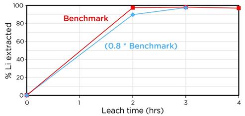 Running at higher leach slurry densities is advantageous from a mass throughput perspective because it reduces operating costs. A high density was assumed for the process flow sheet; however, optimization testing to determine the upper limit of slurry density is recommended. |