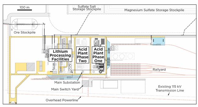 The vehicle traffic to and from the site will be through the existing road. All required consumables for Phase 1 will be trucked delivered to site. A rail line has been considered for the Phase 2 of the project to provide the larger quantity of the raw material for 60,000 tpa Li2CO3 production.